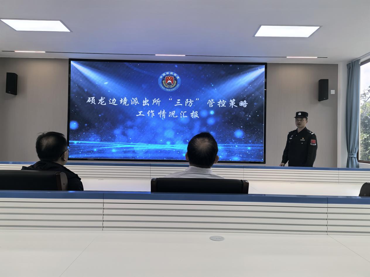 3月15日,调研组一行在大新县硕龙镇德天智慧边境巡控中心,详细了解边境管控智能化建设情况。随后,调研组参观了大新县新材料智造产业园,深入了解硕龙社区边关地下长城、国门党校、国门广场等地的建设与运行情况,以及硕龙口岸岩应通道“两国双园”构想、岩应边民互市区建设情况等。
