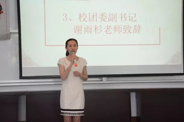 接着,校团委副书记谢雨杉老师致辞,她着重表扬了男人天堂