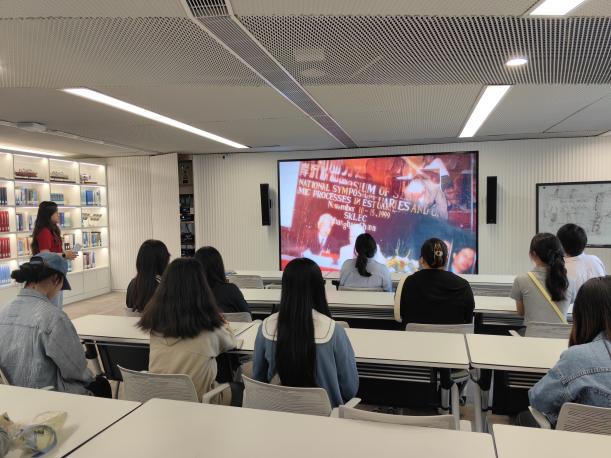 陈列室参观完毕,大家共同观看了河口院大河三角洲计划宣传视频,深入了解了近年来河口海岸野外工作者现场工作的环境、研究点等资料内容。